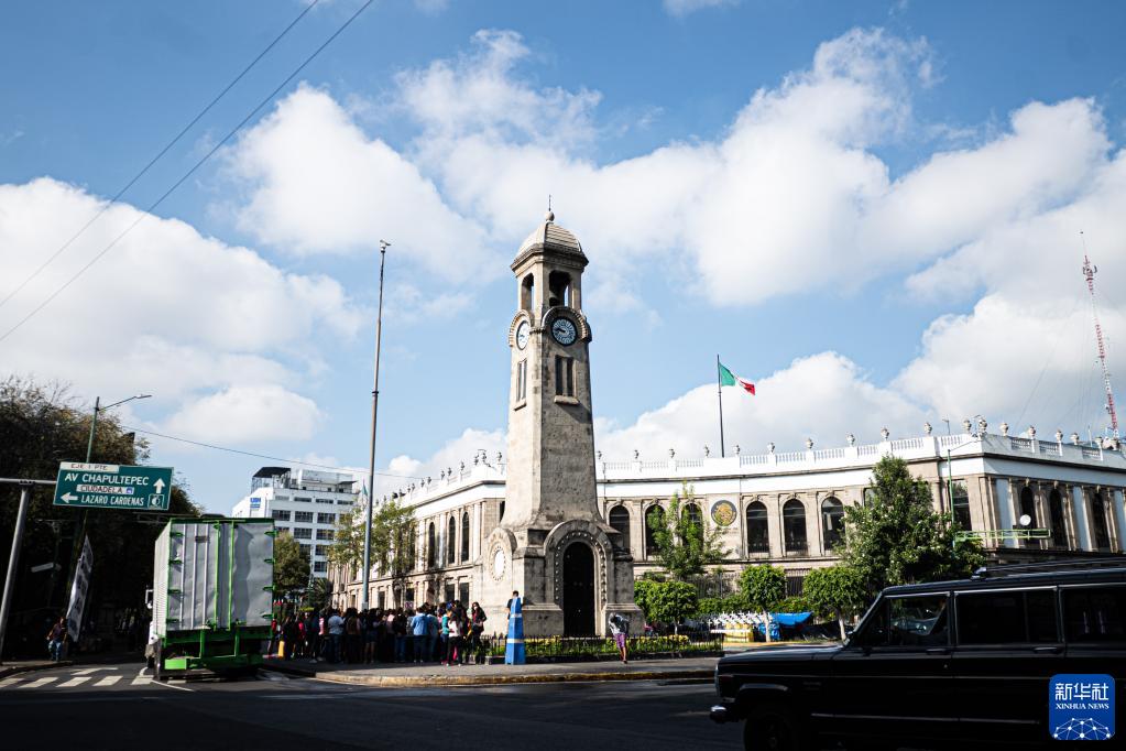 这是9月27日在墨西哥首都墨西哥城拍摄的中国钟。