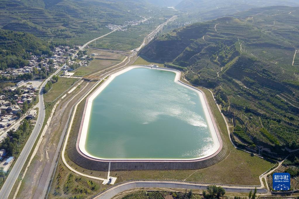 这是9月8日在天水市拍摄的已投用的天水城区引洮供水工程杨家湾调蓄水池(无人机照片)。新华社记者 范培珅 摄