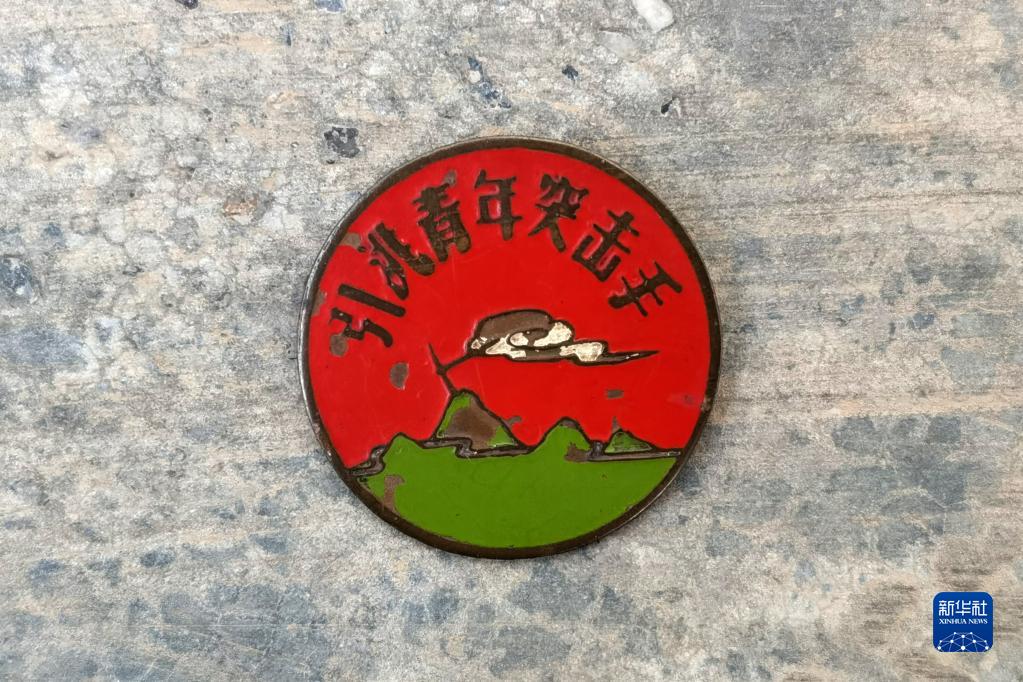 这是9月6日在定西市安定区刘福家中拍摄的其在“老引洮”工程中获得的“引洮青年突击手”奖章。新华社记者 范培珅 摄