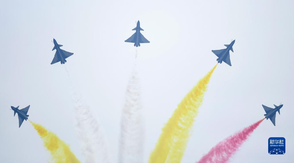 9月28日,中国空军八一飞行表演队在第十三届中国国际航空航天博览会开幕式上进行飞行表演。
