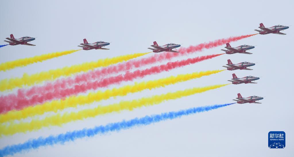 9月28日,中国空军航空大学“红鹰”飞行表演队在第十三届中国国际航空航天博览会开幕式上进行飞行表演。