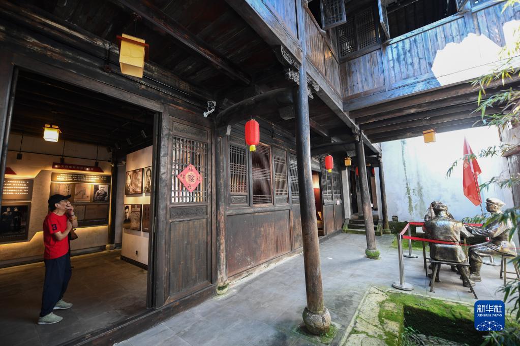 9月28日,游客在湖源乡金萧支队纪念馆参观。
