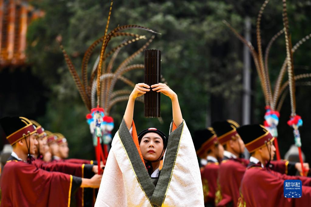9月28日,在辛丑年祭孔大典上,工作人员起舞乐奏《万世师表》。