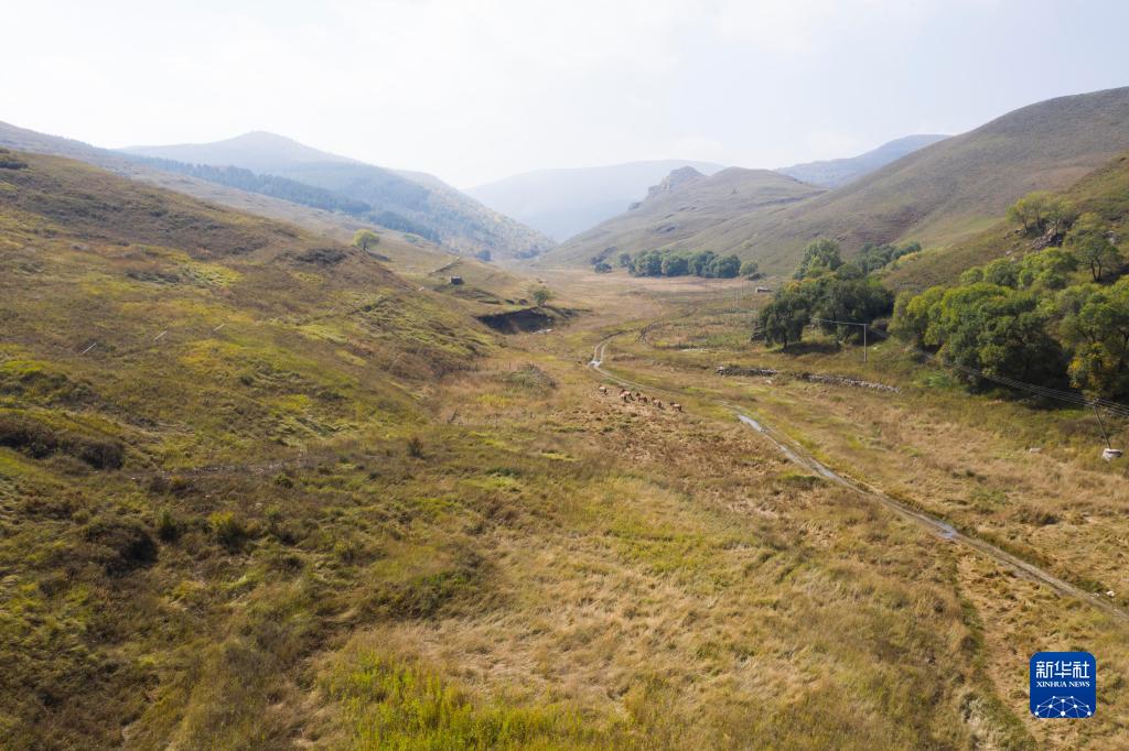 9月28日,放归后的普氏野马走向大青山国家级自然保护区深处(无人机照片)。新华社记者 达日罕 摄