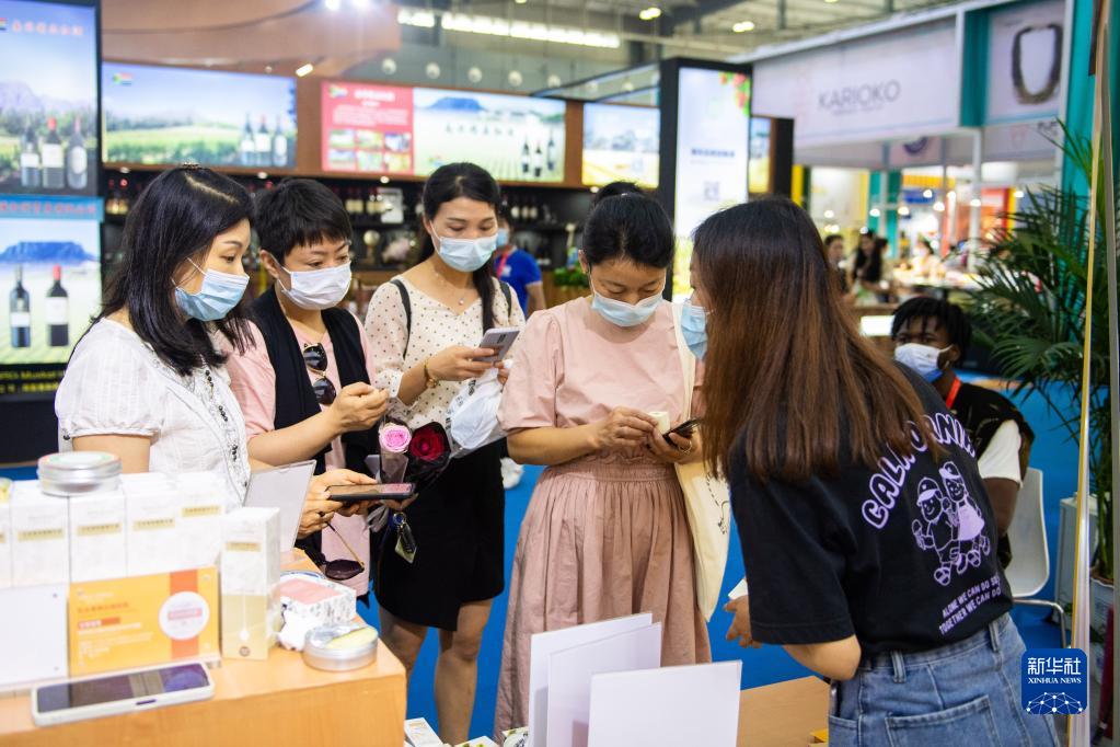 9月28日,观众们在第二届中国-非洲经贸博览会上选购非洲护肤品。