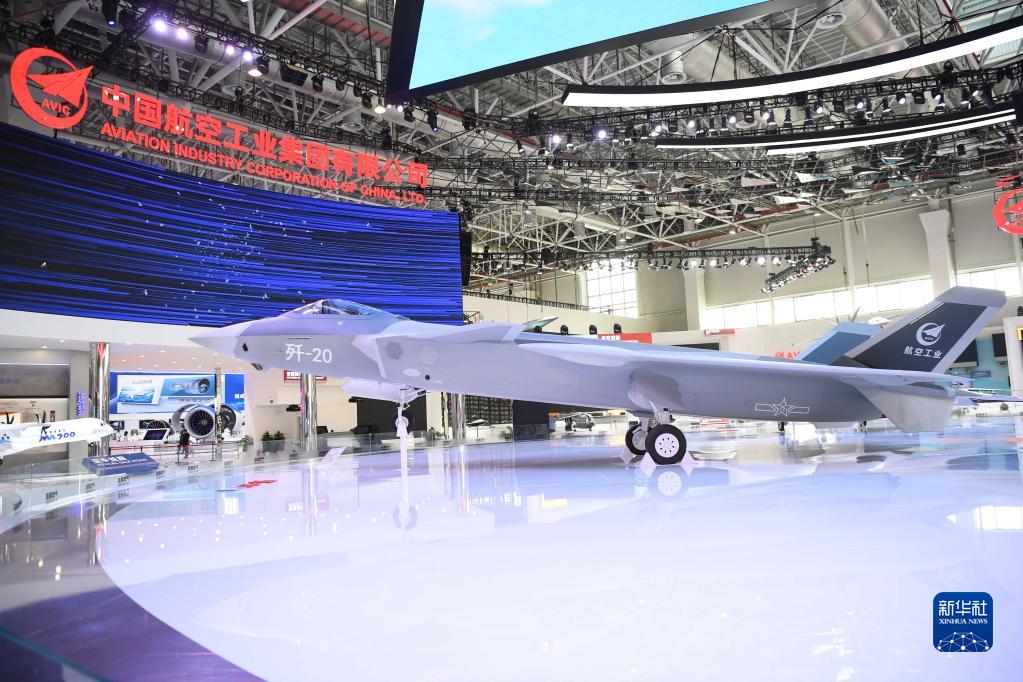 这是中国航空工业集团有限公司展出的歼-20模型(9月27日摄)。