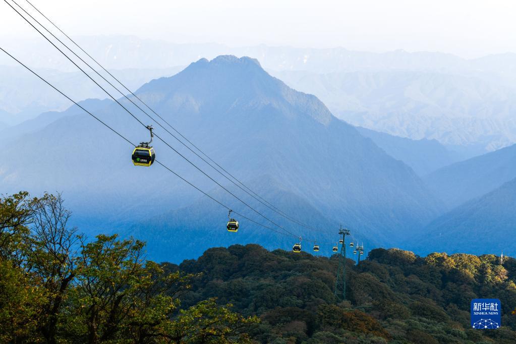 9月27日,游客在贵州省铜仁市梵净山景区乘坐缆车观光。