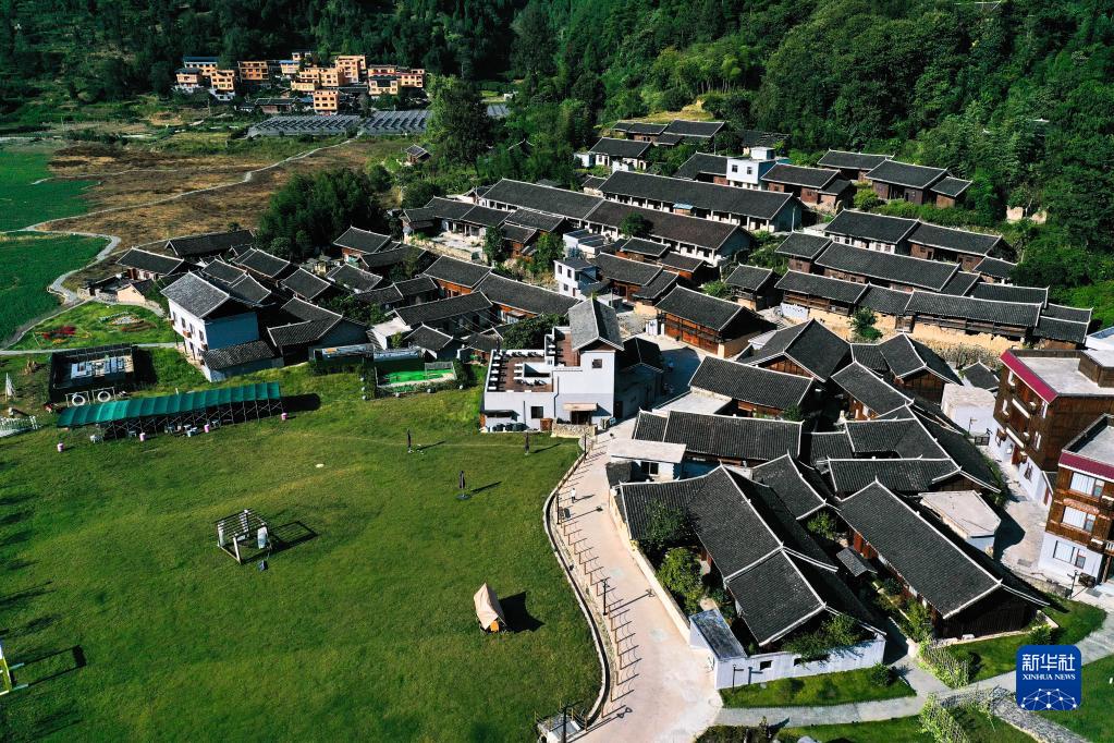 9月26日,游客在贵州省铜仁市万山区牙溪生态农场观光(无人机照片)。