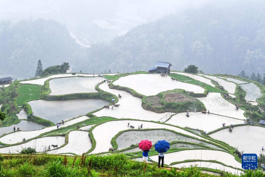 游客在贵州省黎平县尚重镇观看传统农耕展示(5月23日摄)