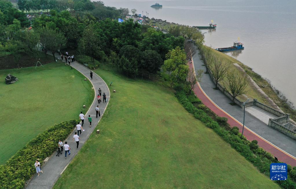 9月28日,居民在重庆云阳月光草坪公园游览(无人机照片)。