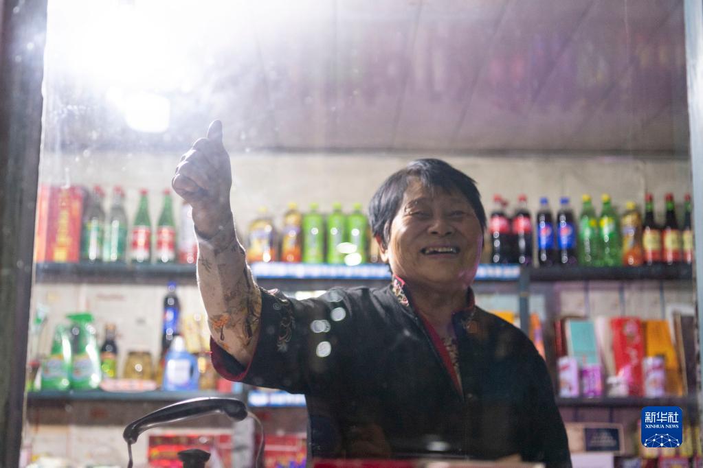 在哈尔滨市巴彦县兴隆镇,居民在家中比手势加油鼓劲(9月23日摄)。