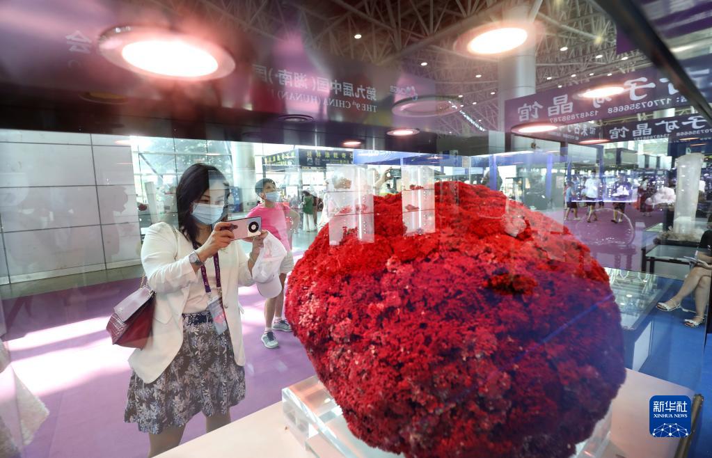 观众在第九届中国(湖南)国际矿物宝石博览会上参观(9月28日摄)。