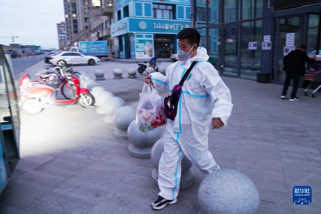 傍晚时分,李阳在往电动车上装物品准备配送(9月26日摄)。