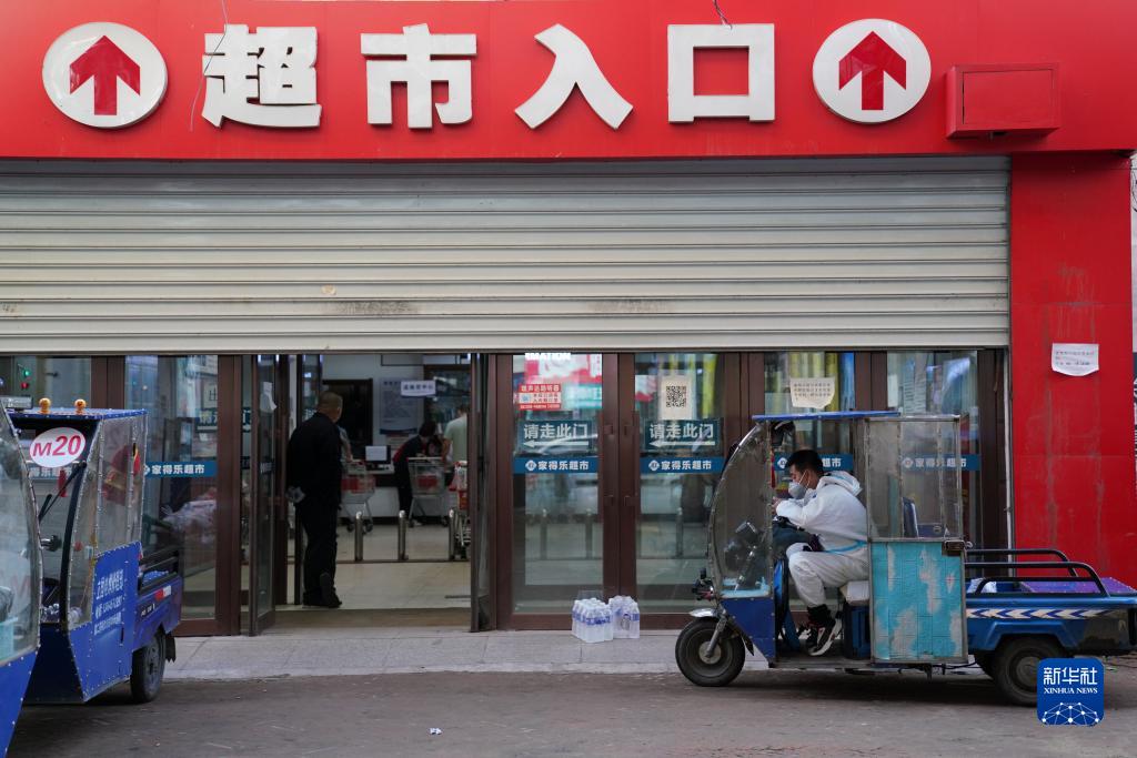 在巴彦县一家超市门外,李阳在等待配送的物品出单(9月27日摄)。