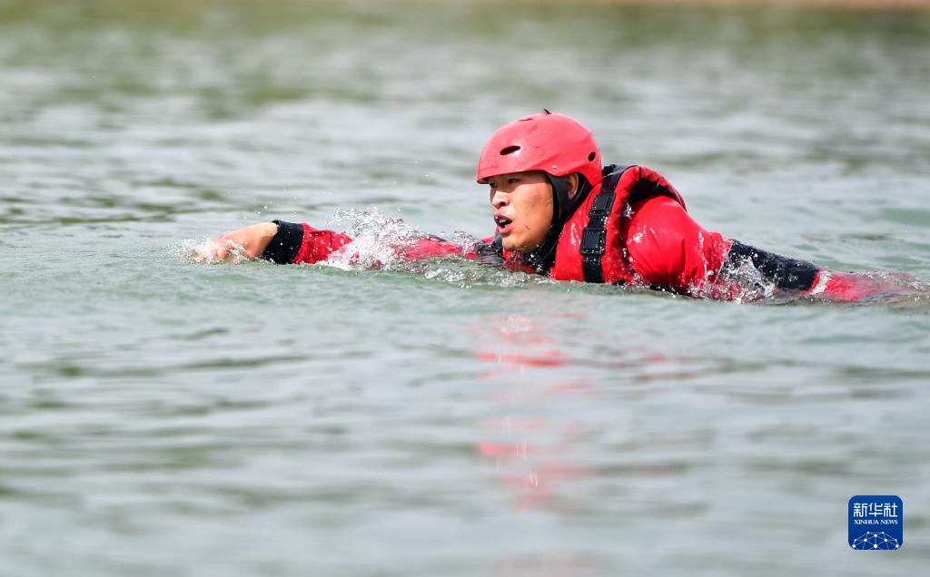 9月29日,消防员在甘肃省临夏回族自治州永靖县刘家峡水域进行落水人员营救训练。