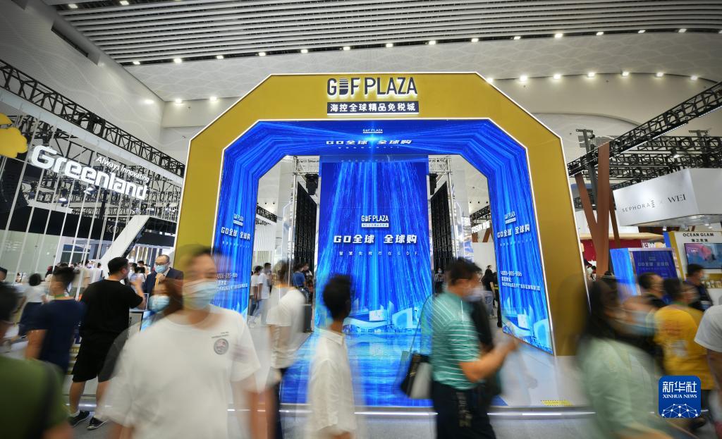 这是消博会上的海控全球精品免税城展台(5月9日摄)。