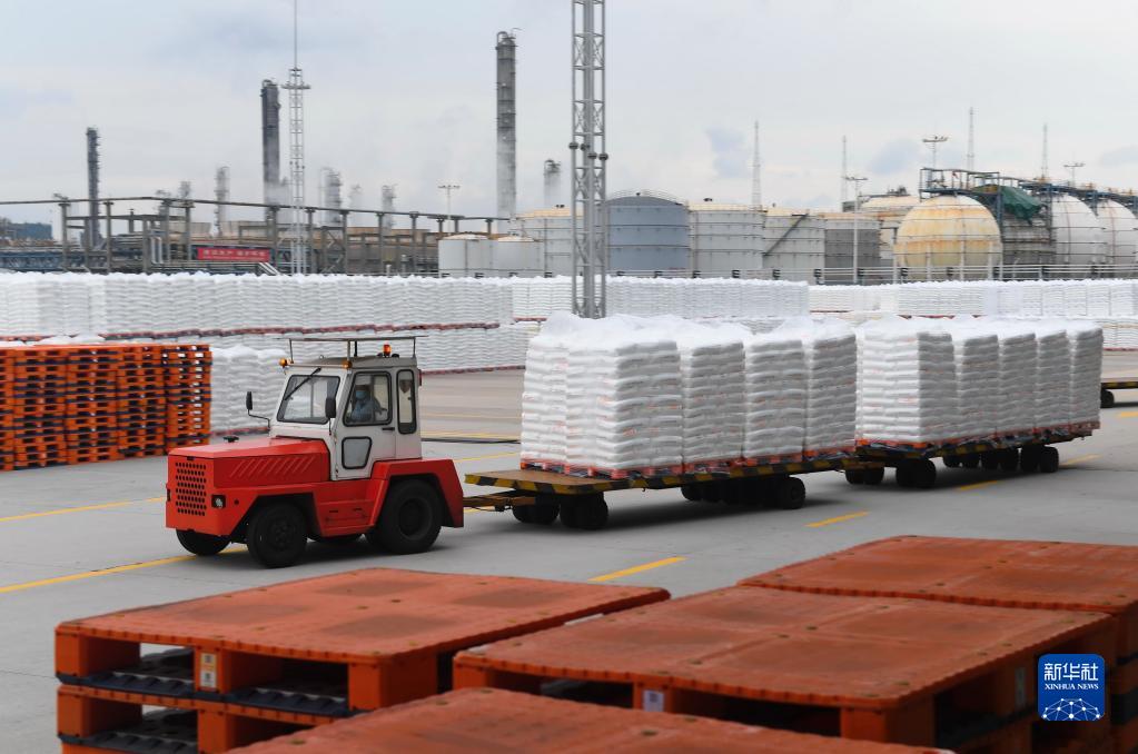 9月23日,在位于泉州的福建联合石油化工有限公司堆料场,运送车辆在忙碌。