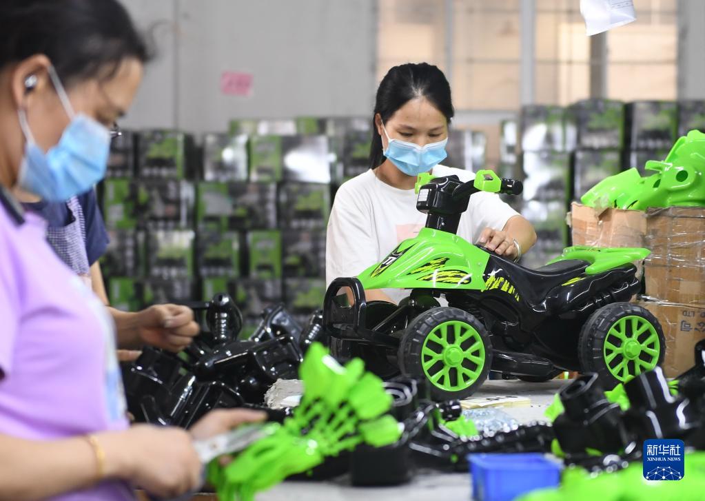 9月25日,在位于晋江经济开发区的泉州嘉利儿童用品有限公司,员工在检验童车。