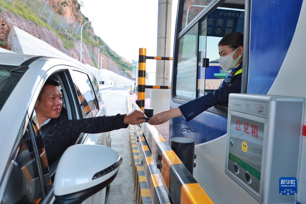 9月30日,工作人员在威围高速公路金斗收费站进行实车测试。新华社记者 刘续 摄