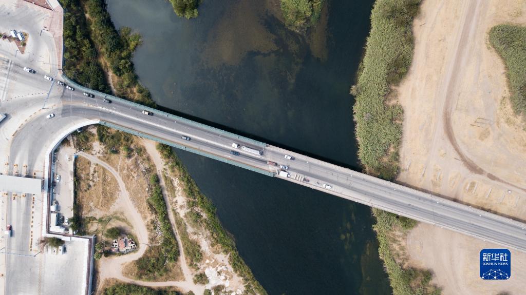 这是9月29日在墨西哥阿库尼亚城拍摄的“德尔里奥国际桥”(无人机拍摄)。9月,大批非法移民在连接美国得克萨斯州德尔里奥市与墨西哥科阿韦拉州阿库尼亚城的“德尔里奥国际桥”一带“安营扎寨”。9月24日,“德尔里奥国际桥”下的临时营地被美方“清空”。