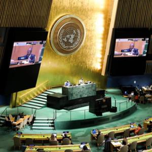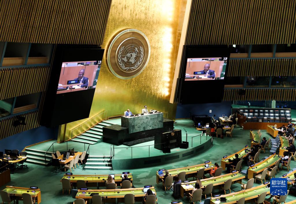 这是9月30日在位于纽约的联合国总部拍摄的尼日利亚代表78国在第76届联合国大会第三委员会一般性辩论中发言现场。