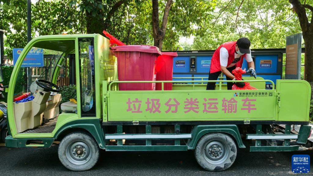 10月1日,垃圾分类外勤员吴家屏在福州市仓山区金山街道运输垃圾。