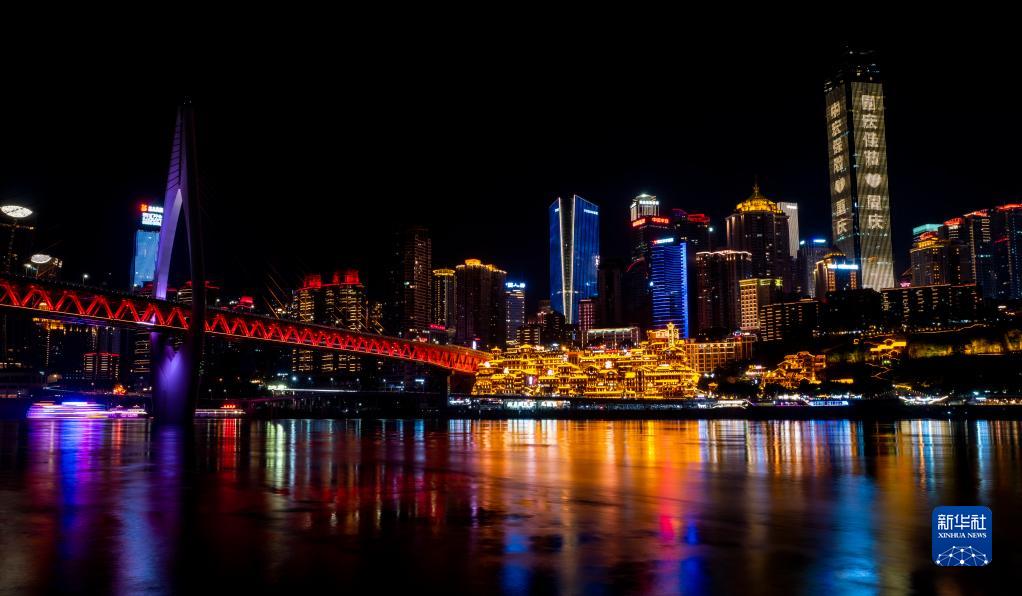 这是9月30日拍摄的夜色中的重庆千厮门嘉陵江大桥和洪崖洞景区。