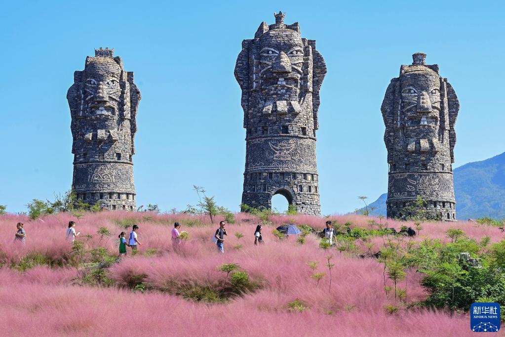 10月1日,游客在重庆市酉阳土家族苗族自治县板溪镇叠石花谷景区游玩。