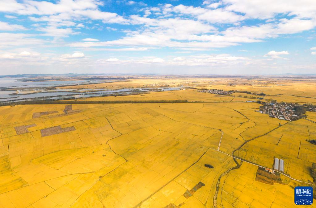 这是10月1日拍摄的吉林省吉林市永吉县万昌镇的稻田景色(无人机照片)。