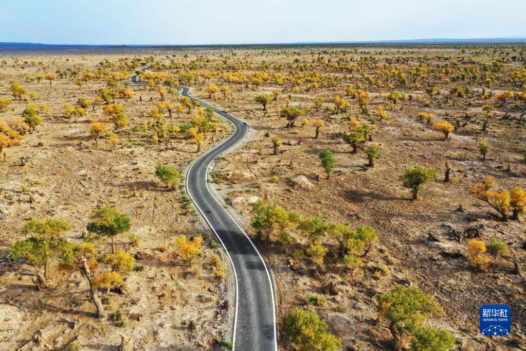 这是10月1日拍摄的新疆伊吾胡杨林景色(无人机照片)。