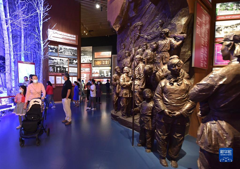 当日,不少游客来到中国共产党历史展览馆参观,在国庆节接受党史教育。