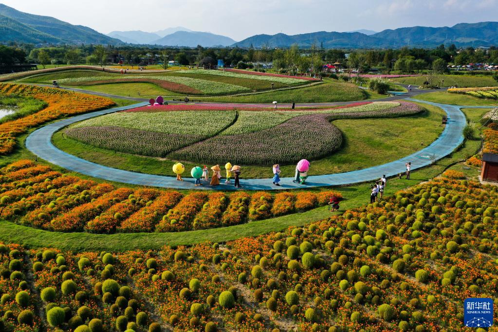 当日,不少游客来到浙江省杭州市余杭区径山镇大径山乡村国家公园,游览花海,乐享假期。