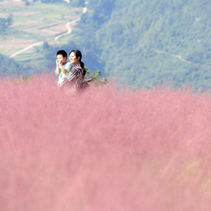 10月2日,游客在重庆市武隆区仙女山镇懒坝大地艺术景区游玩拍照。