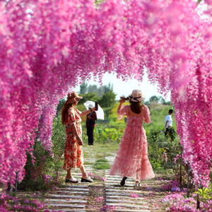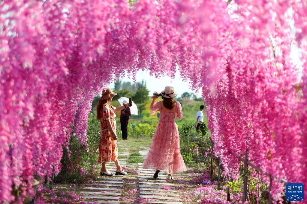 10月2日,游客在安徽省淮北市杜集区高岳街道双楼花海游玩。