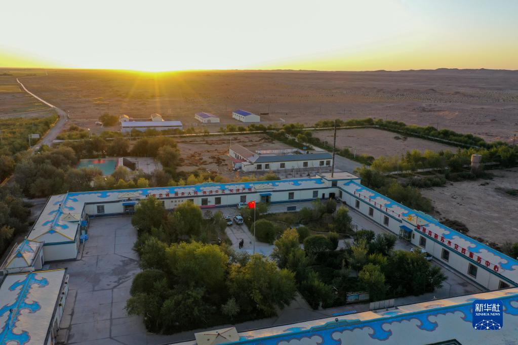 晨光中的温图高勒边境派出所(10月1日摄,无人机照片)。