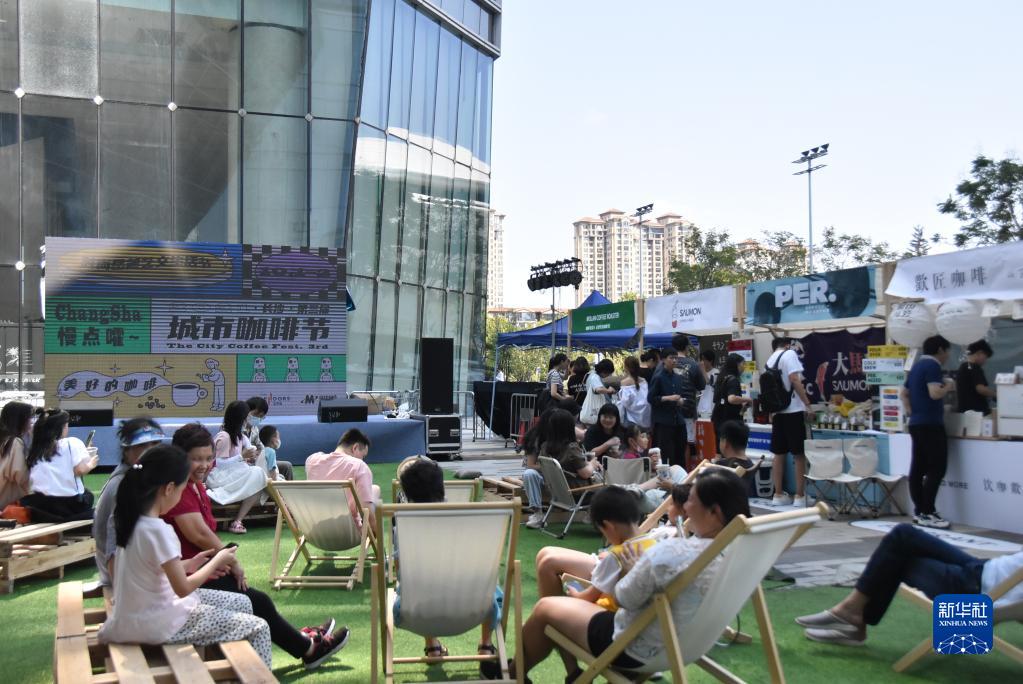 10月3日,市民在长沙第三届城市咖啡节现场休闲。