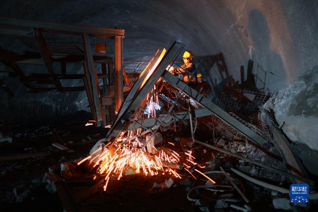 10月3日,工作人员在长坡二号隧道内施工。