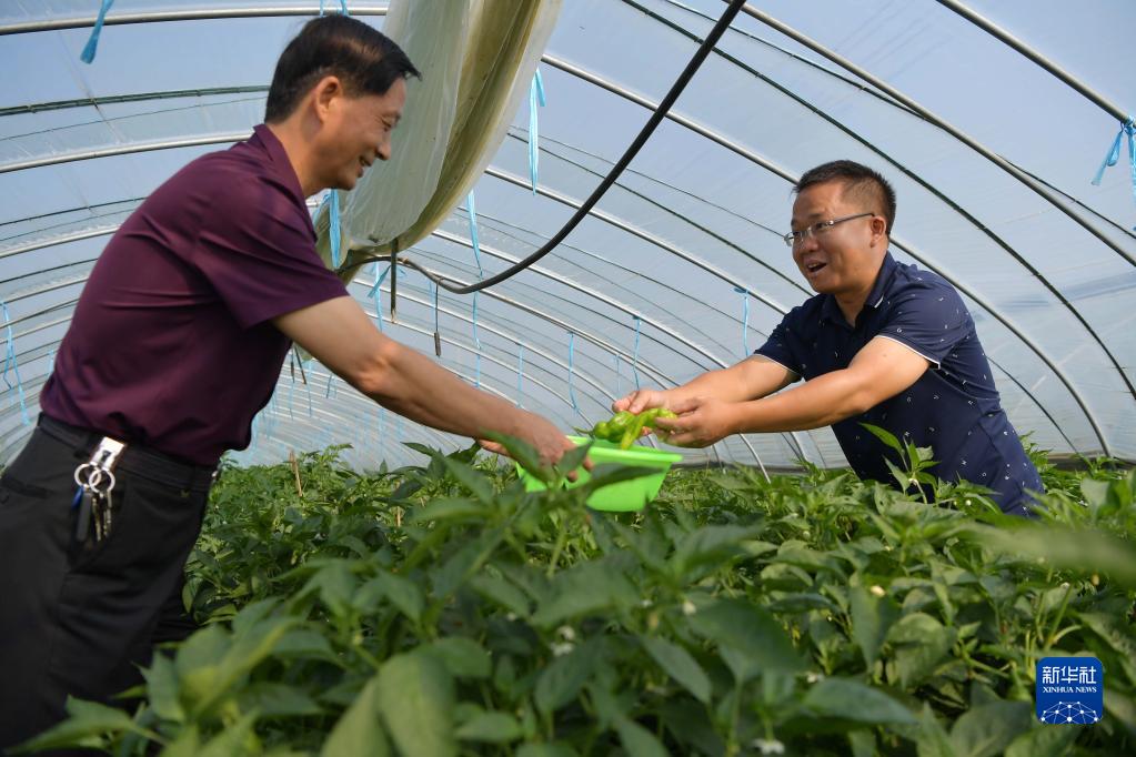 10月3日,游客在江西南昌市新建区象山镇河林村采摘大棚辣椒。