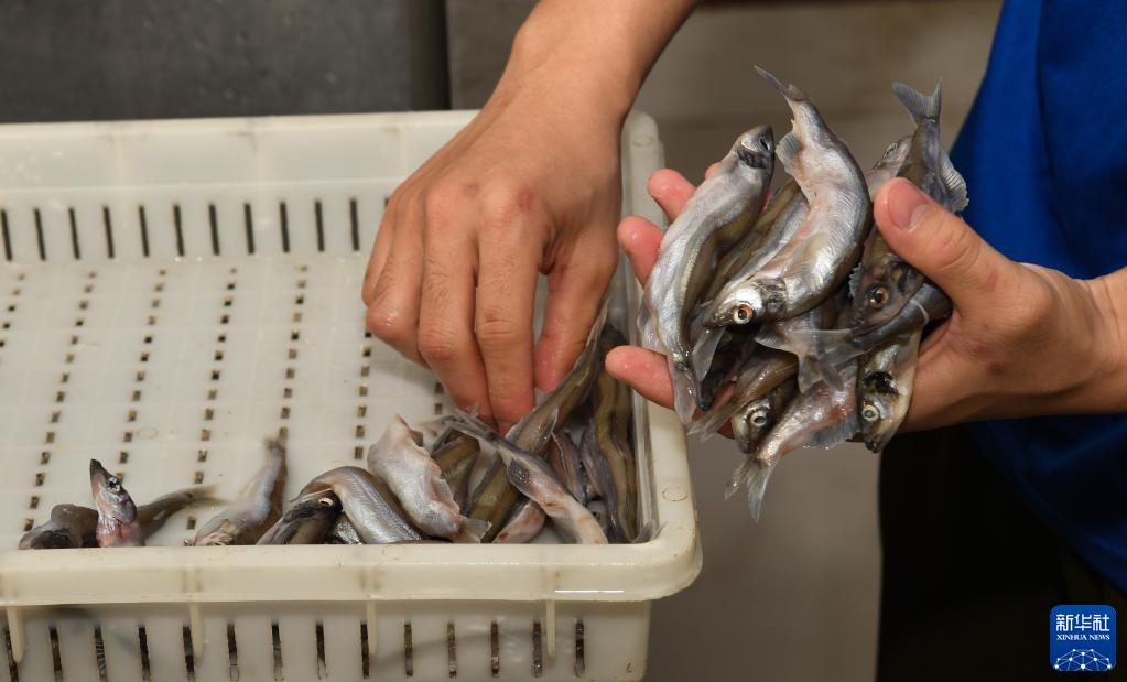 黎瑞禧在饵料处理间为企鹅准备食物(10月2日摄)。新华社记者 杨冠宇 摄