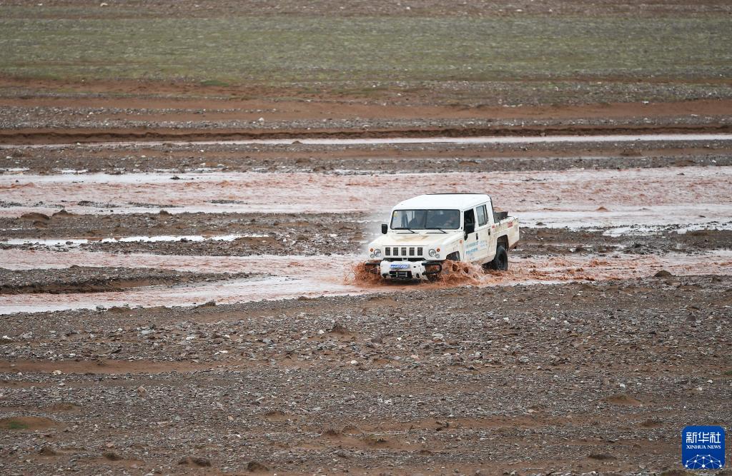 巡山队员在可可西里地区驾车巡山(2020年7月8日摄)。