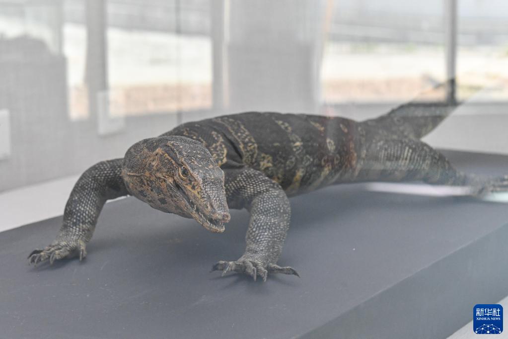 这是在鹦哥岭动植物博物馆拍摄的国家一级重点保护野生动物圆鼻巨蜥的标本(9月29日摄)。