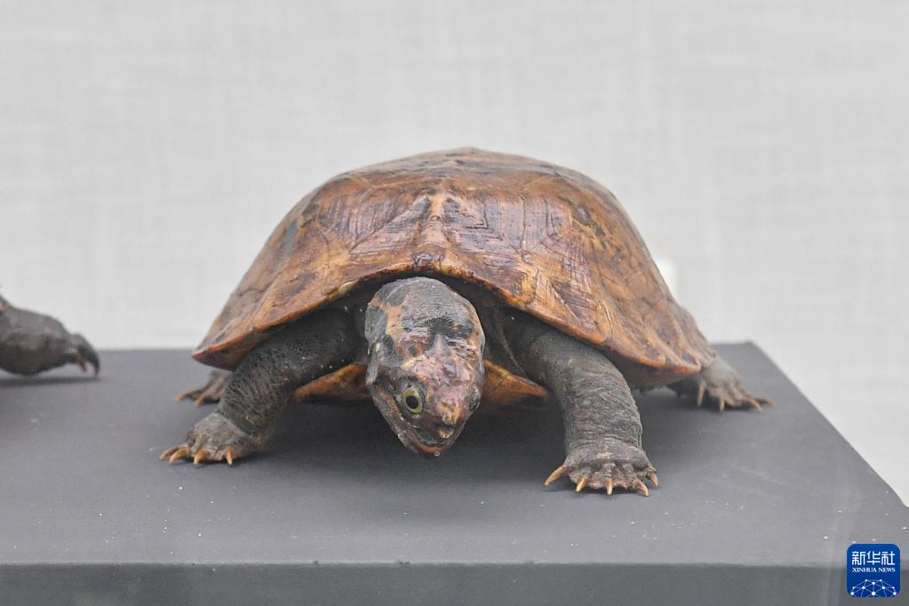 这是在鹦哥岭动植物博物馆拍摄的锯缘闭壳龟标本(9月29日摄)。
