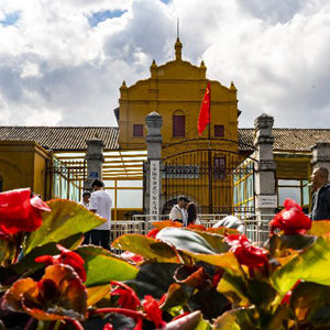 10月4日,游客在云南陆军讲武堂历史博物馆“打卡”留念。