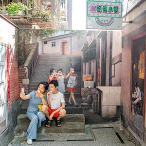 10月5日,游客在重庆市南岸区南坪街道正街社区“超级80街”的80记忆小巷拍照。