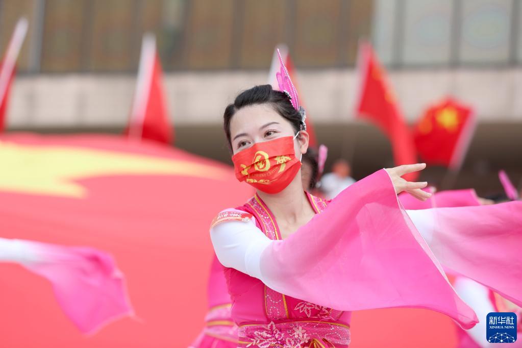 10月1日,香港市民在《我和我的祖国》的歌声中起舞。