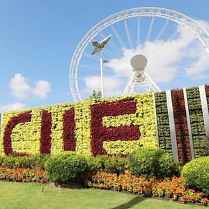 这是国家会展中心(上海)周边的进博会主题绿化装饰(10月5日摄)。新华社记者 方喆 摄