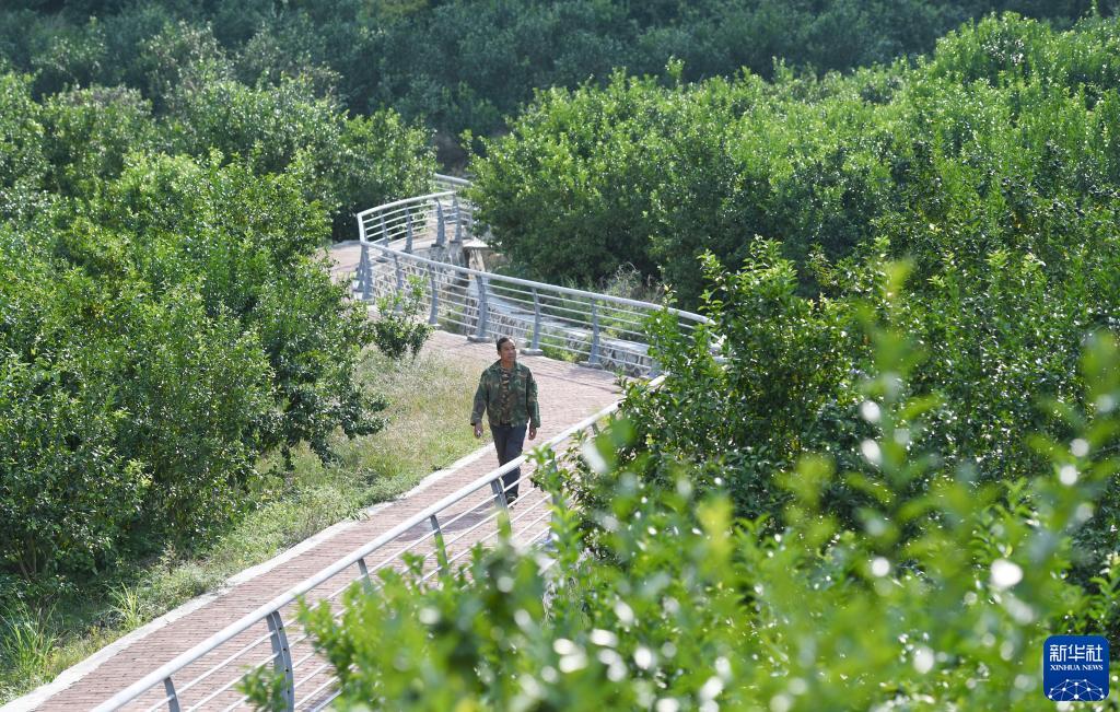 在广西百色市乐业县新化镇百坭村那用屯,班统茂走在砂糖橘地里(10月1日摄)。