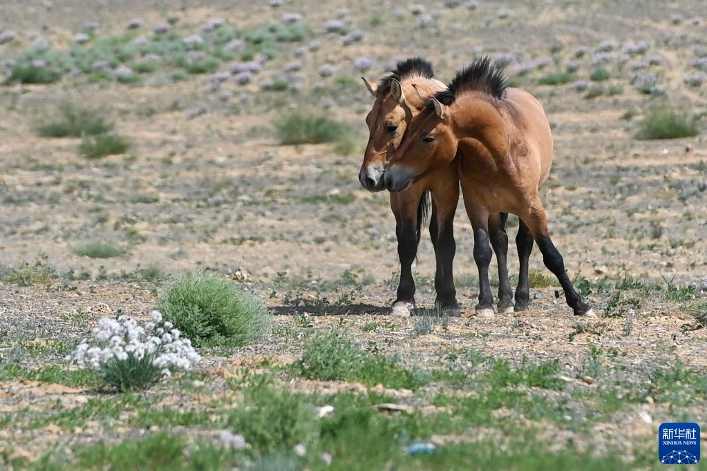 在新疆卡拉麦里山有蹄类野生动物自然保护区乔木西拜野放点拍摄的普氏野马(9月1日摄)。