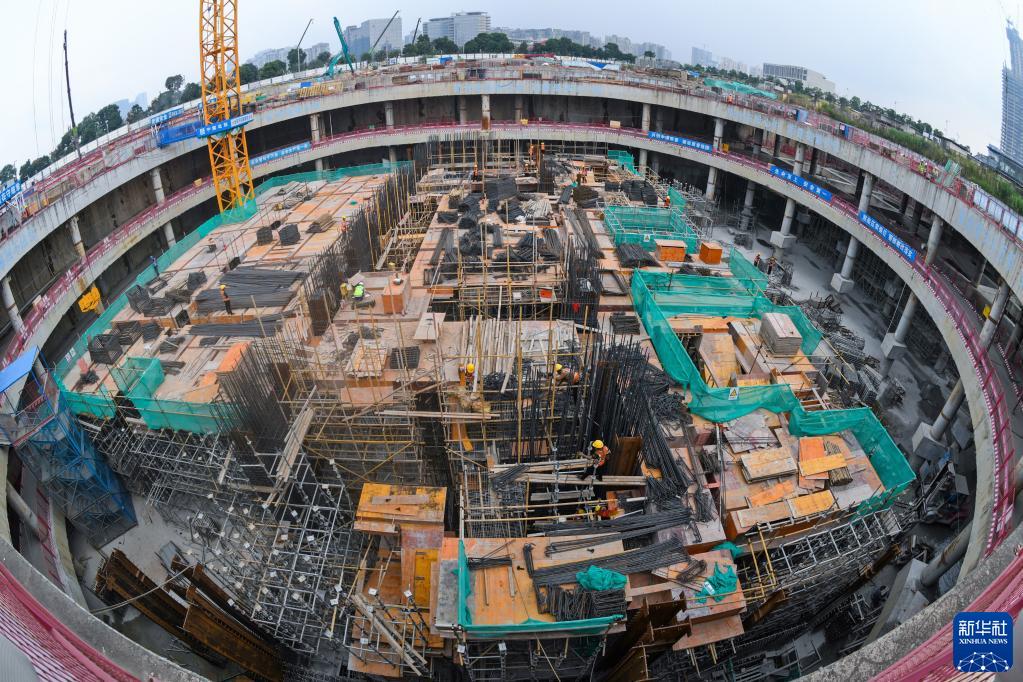 这是深圳前海综合交通枢纽项目建设现场(10月1日摄)。前海综合交通枢纽项目建成后,将成为前海内部的交通集散地和连接粤港澳大湾区其它城市的重要枢纽。