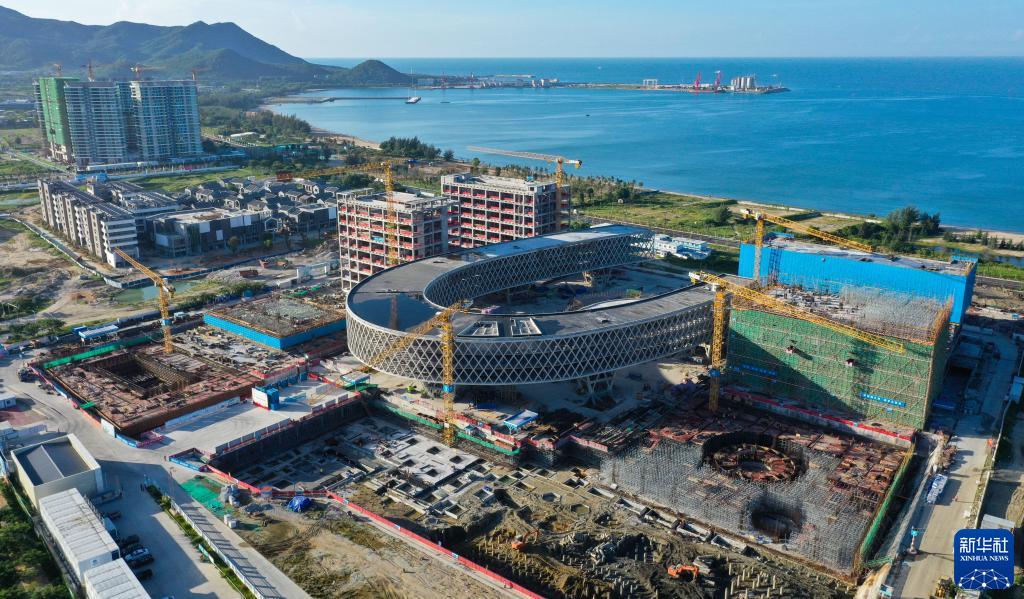 建设中的海南三亚崖州湾科技城的深海科技创新公共平台项目(无人机照片,10月4日摄)。深海科技创新公共平台项目未来将重点建设成为国家深海科技创新公共平台和深海科技高层次人才产学研集聚地,满足涉海高校开展深海科技研发、科技成果转化等公共需求。